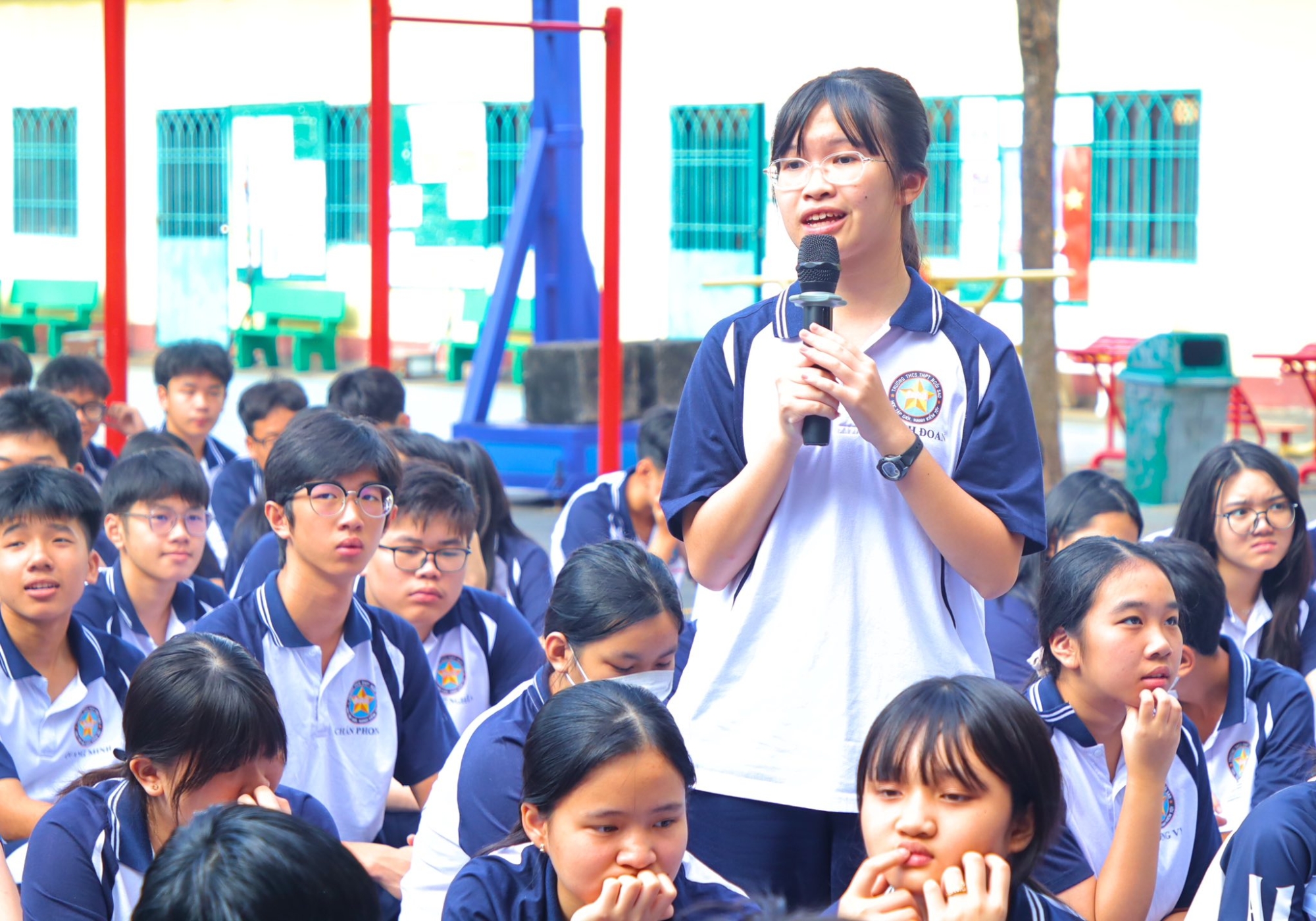 🌼🌿 Bằng hình thức thể hiện sinh động qua các tiểu phẩm và tình huống quen thuộc trong môi trường học đường, buổi ngoại khóa đã tạo nên bầu không khí hào hứng, dễ tiếp nhận. Từ câu chuyện ứng xử trên mạng xã hội, ý thức tôn trọng nội quy cho đến trách nhiệm với bản thân và tập thể, mỗi phần trình bày đều gợi mở suy nghĩ sâu sắc. Luật pháp hiện lên nhẹ nhàng như sắc xuân, thấm dần vào nhận thức của học sinh qua từng câu chuyện giản dị mà chân thực. 🌼🌿