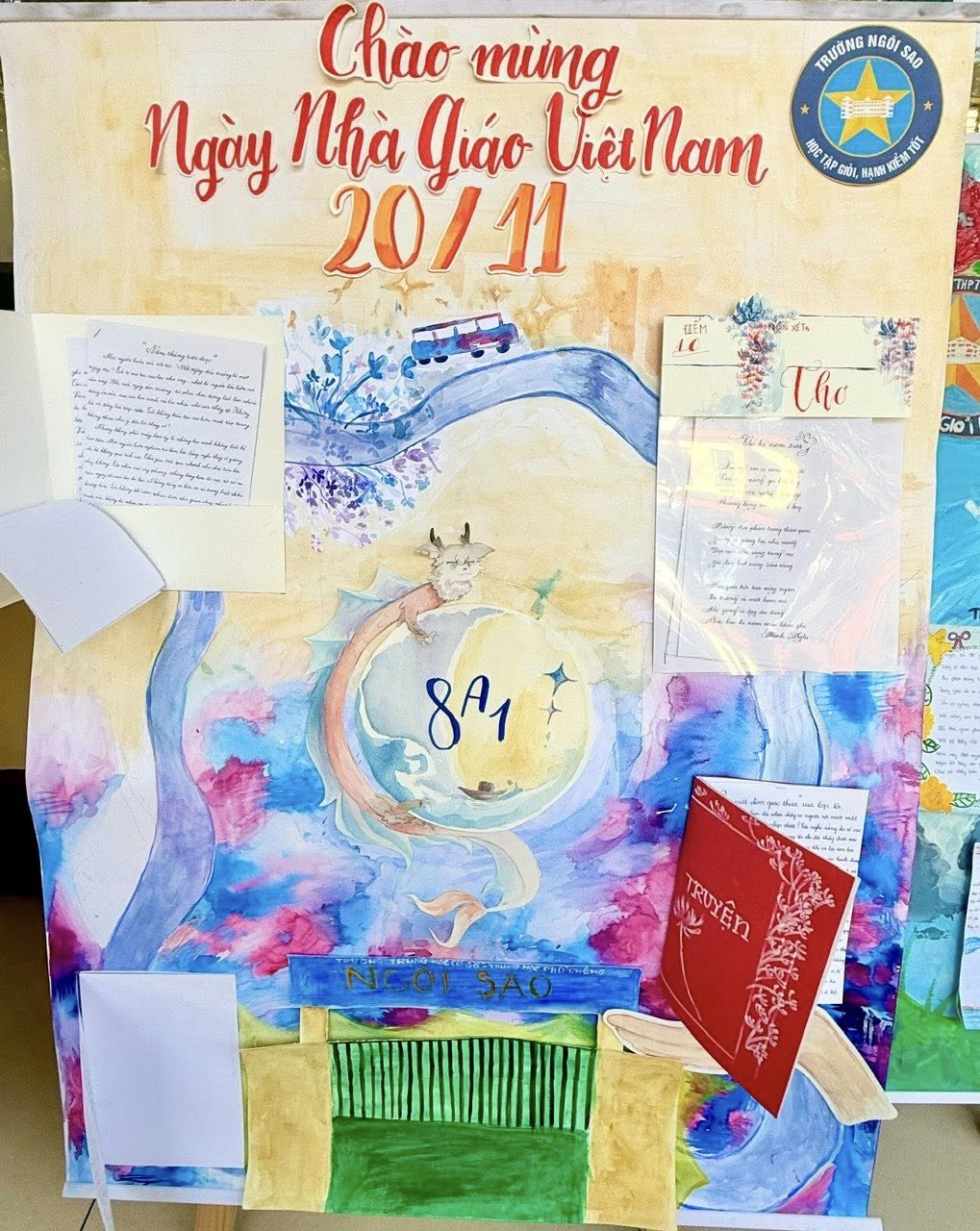 Làm báo tường không chỉ là sân chơi sáng tạo mà còn là dịp để học sinh gửi gắm tình cảm, bày tỏ lòng biết ơn đến thầy cô bằng chính cảm xúc chân thành của mình. Từng bài viết, từng nét vẽ, từng mảng màu được chăm chút tỉ mỉ đều chứa đựng suy nghĩ, ước mơ và sự kính trọng mà các em dành cho những người đang ngày đêm dẫn dắt mình trưởng thành 🎨💗.
