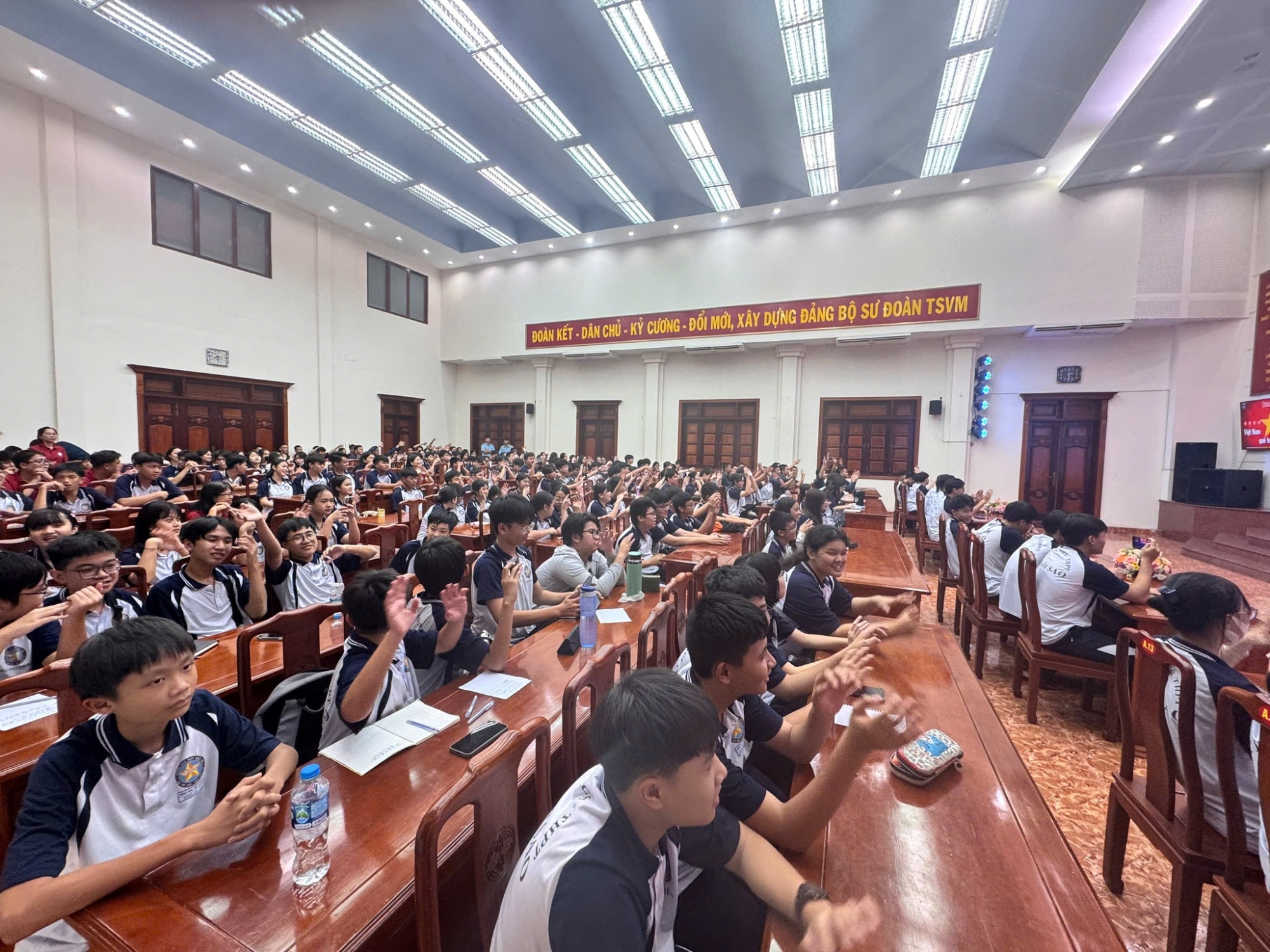 🎬 Ngay từ những phút đầu tiên, chương trình đã thu hút sự chú ý của các em học sinh với những nội dung phong phú và hấp dẫn. Các em được lắng nghe chia sẻ về lịch sử hình thành và phát triển của Sư đoàn Phòng không 367, được xem những thước phim tư liệu quý giá ghi lại các chiến công vang dội trong cuộc kháng chiến chống Mỹ. Những hình ảnh chân thực, lời kể xúc động đã giúp các em cảm nhận rõ hơn về sự hy sinh, gian khổ nhưng đầy kiêu hãnh của các chiến sĩ năm xưa. 🎞️