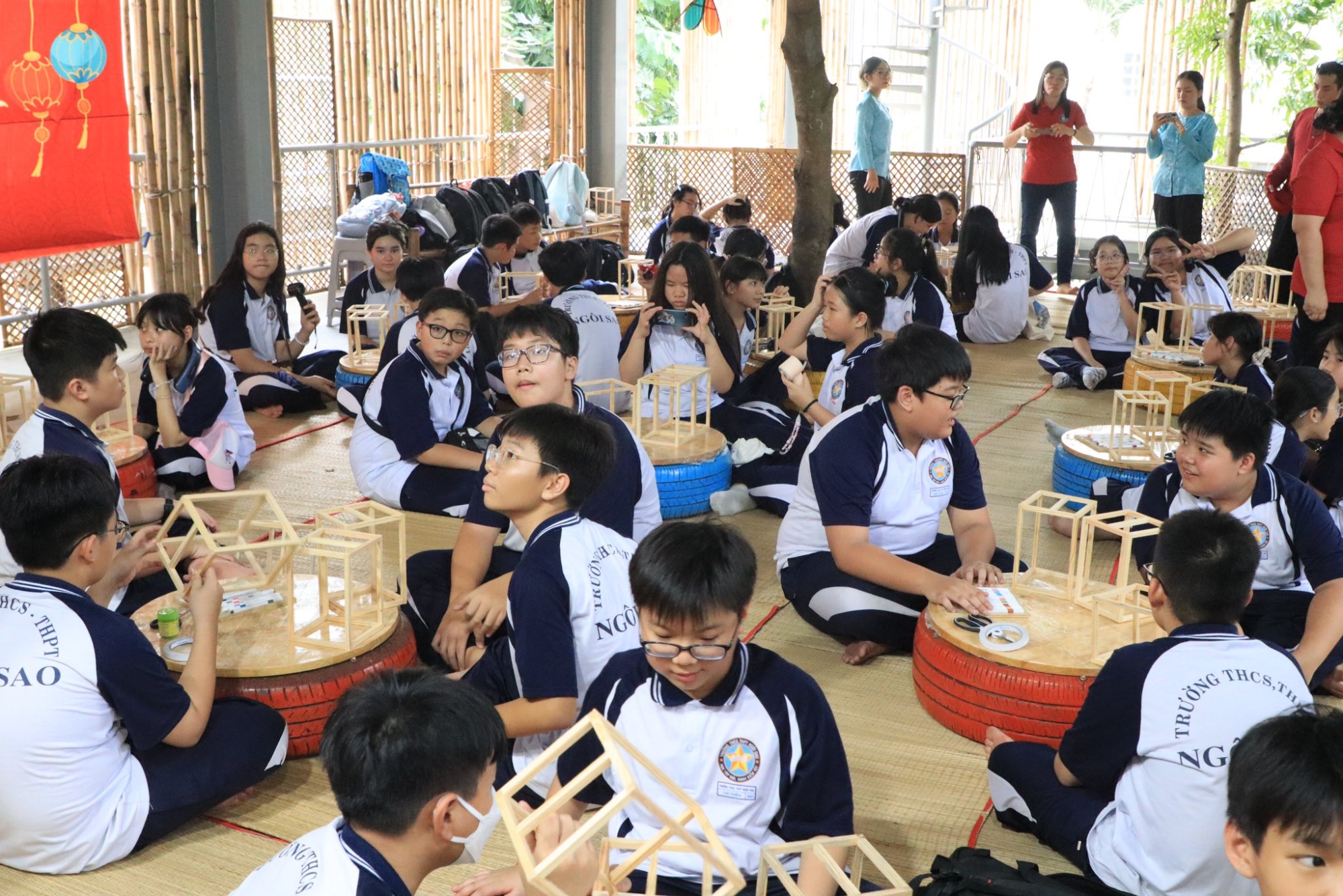 🌳 Trong không gian xanh mát và yên bình của Vườn Ươm, với mái lá, cầu treo, nhà sàn và những tán cây rợp bóng, các em học sinh đã có những phút giây thoải mái sau giờ học căng thẳng. Điều đặc biệt nhất chính là khoảnh khắc các em tự tay vẽ nên họa tiết, phối màu và tỉ mỉ ghép từng nan tre, từng tấm lụa để tạo ra những chiếc lồng đèn rực rỡ ánh sáng và những chiếc quạt lụa mềm mại, uyển chuyển. ✨