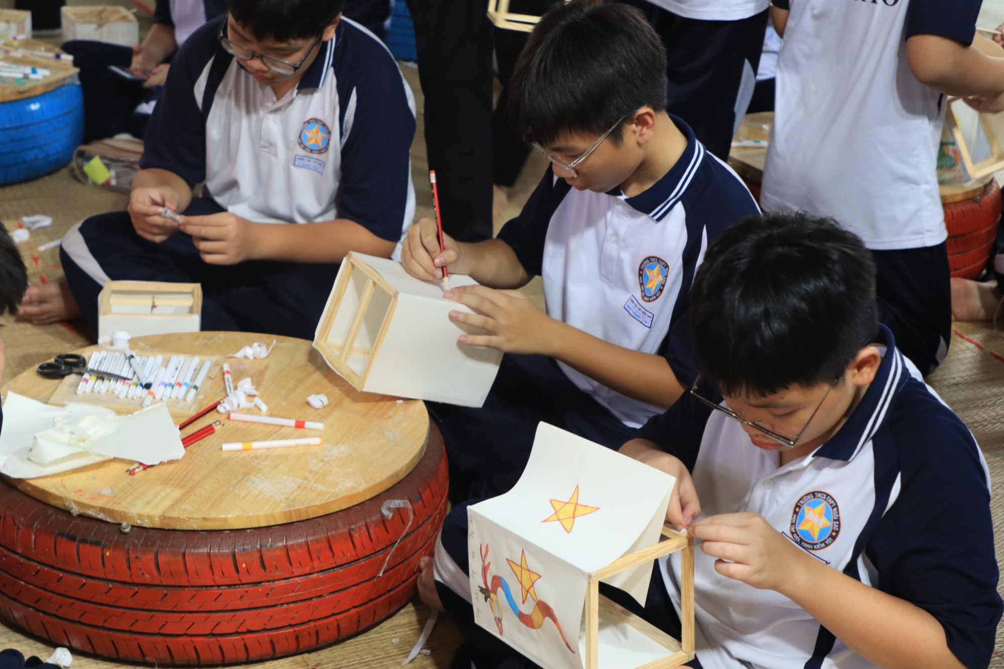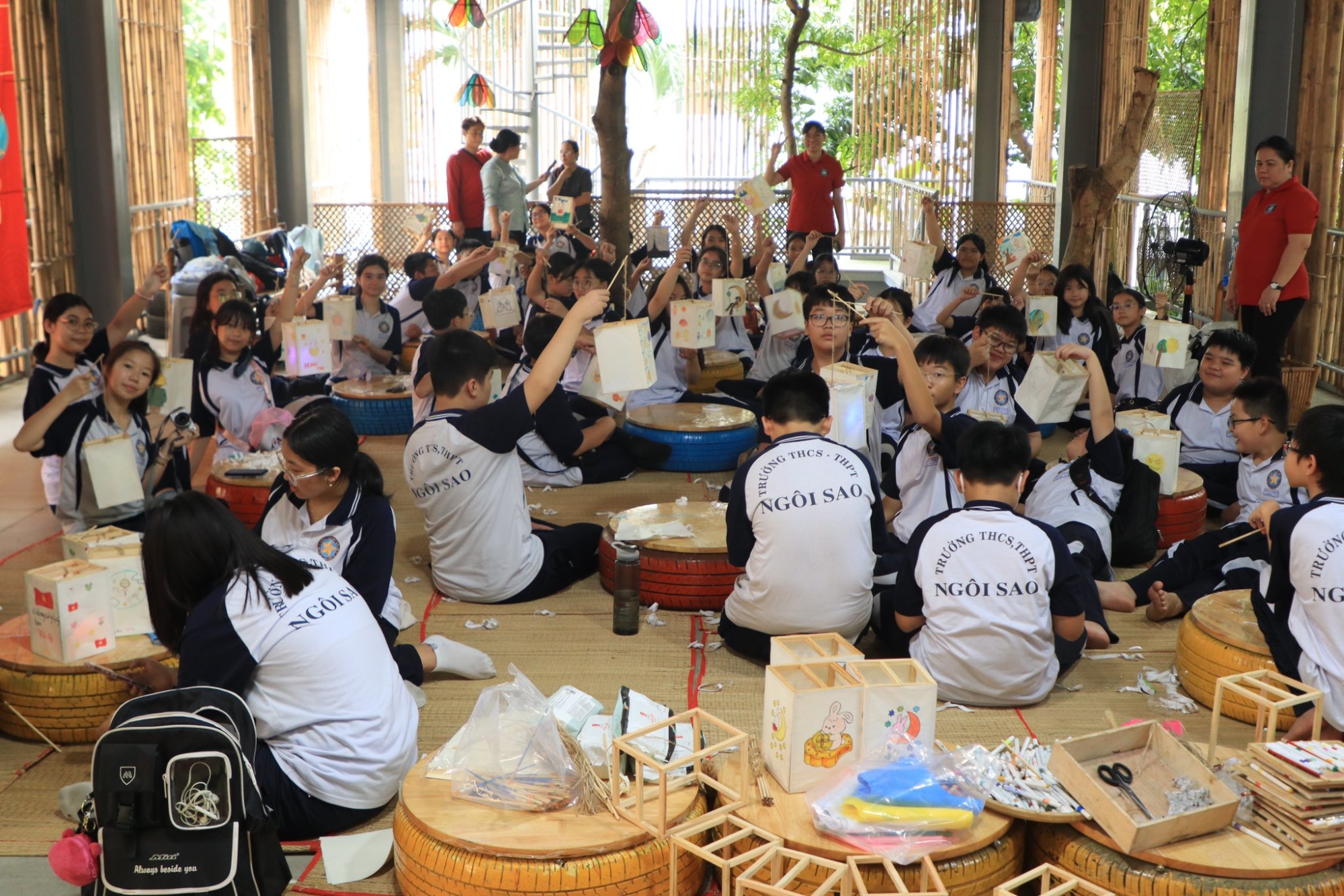 🎉 Hiểu được điều đó, chiều ngày 20/9/2025, Trường THCS, THPT Ngôi Sao đã tổ chức cho học sinh khối 6 và 7 một buổi ngoại khóa đầy ý nghĩa tại Vườn Ươm Giấc Mơ Việt Nam. Đây là hoạt động phối hợp liên môn giữa Mỹ thuật – Hoạt động trải nghiệm – Khoa học xã hội, mang đến cho các em cơ hội được “học mà chơi, chơi mà học” qua trải nghiệm làm lồng đèn giấy và quạt lụa thủ công – những sản phẩm gắn liền với nét đẹp làng nghề truyền thống. 🏮🎐