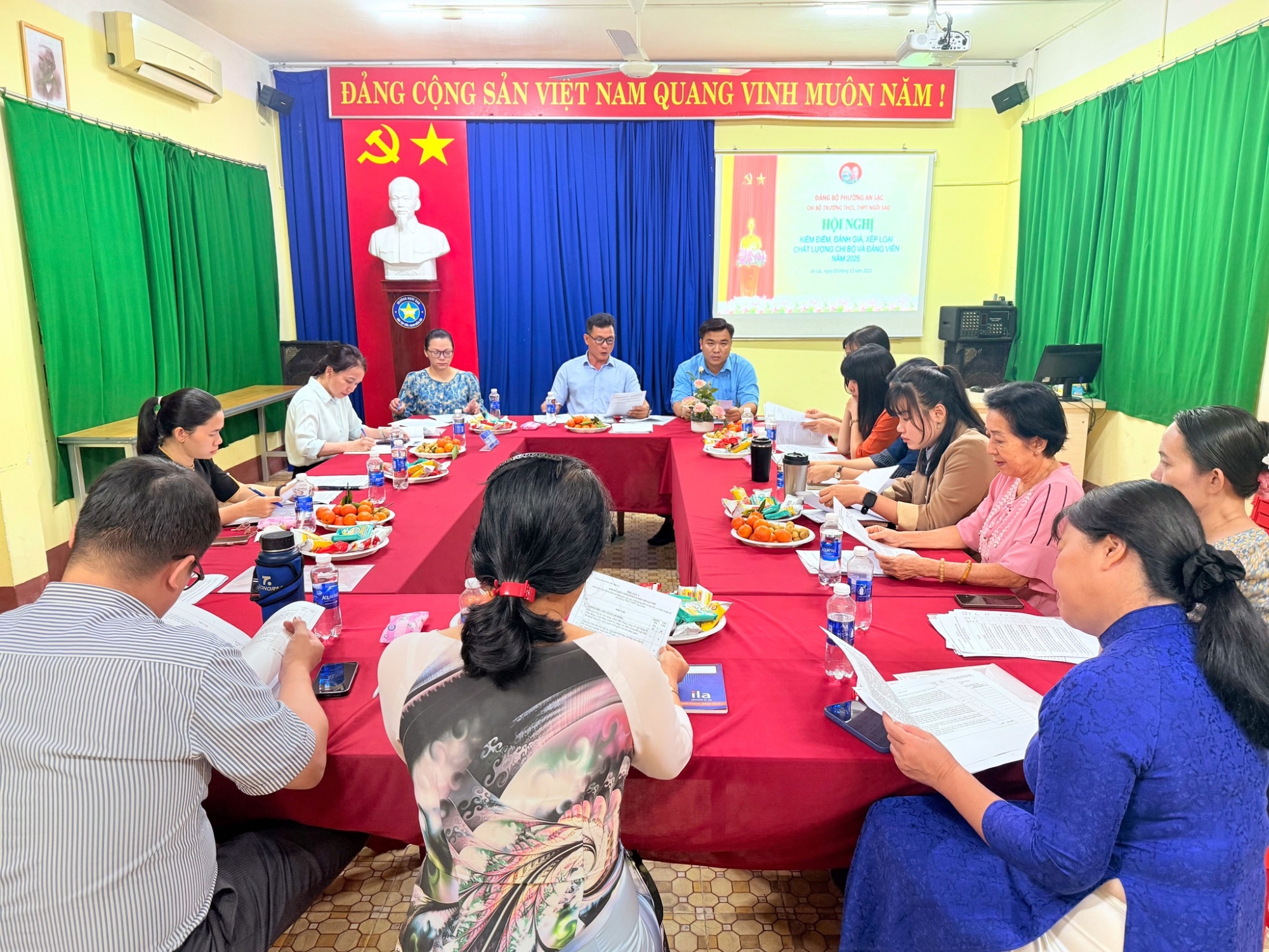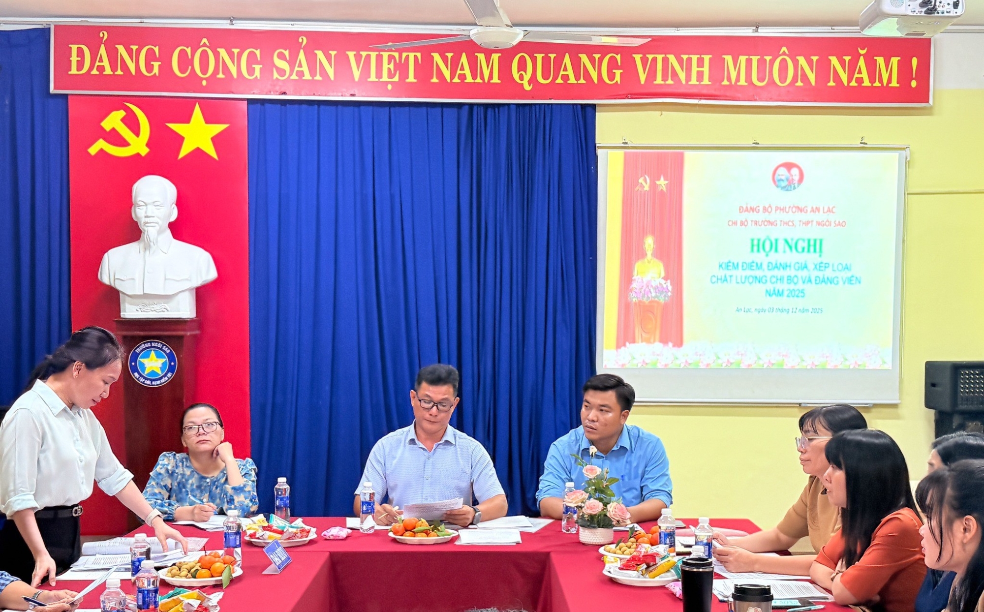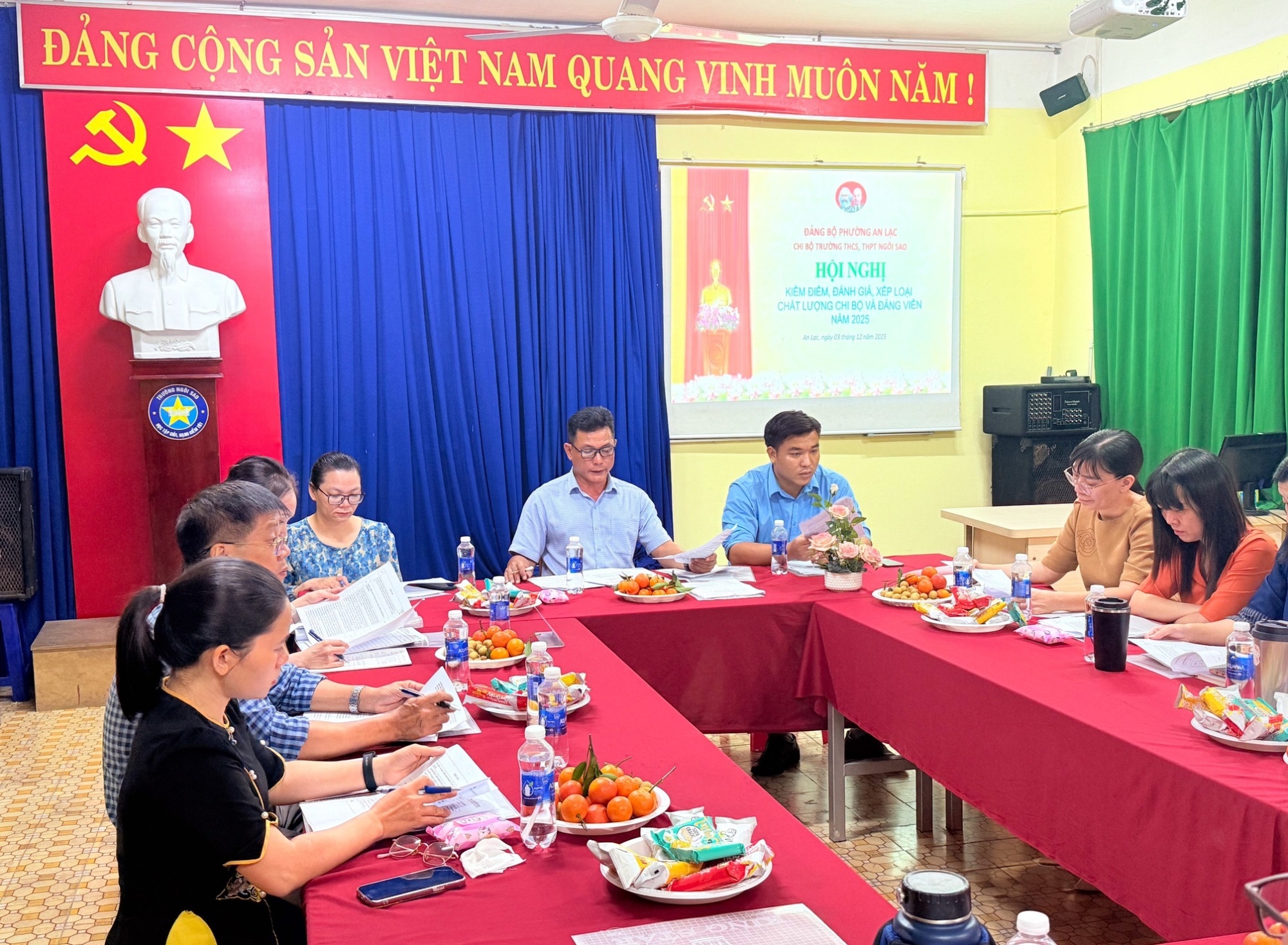 📌 Chiều ngày 03/12/2025, Chi bộ Trường THCS, THPT Ngôi Sao đã long trọng tổ chức Hội nghị kiểm điểm, đánh giá và xếp loại chất lượng tổ chức Đảng, đảng viên năm 2025. Đây là hoạt động thường niên quan trọng nhằm nhìn nhận kết quả lãnh đạo, chỉ đạo trong năm học; đồng thời đề ra phương hướng, nhiệm vụ và giải pháp nâng cao chất lượng công tác xây dựng Đảng trong thời gian tới. Hội nghị diễn ra trong không khí nghiêm túc, dân chủ, với sự tham dự đầy đủ của tất cả đảng viên đang sinh hoạt tại Chi bộ.